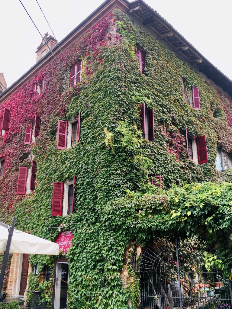 I colori dell’autunno le hanno dato una veste tutta speciale, rendendola effervescente e pronta per un ballo in maschera, con le facciate delle abitazioni in pietra ricoperte interamente di foglie che dal verde si tramutavano in rosso viola, creando effetti scenici davvero spettacolari.